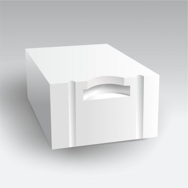 Блок стеновой неармированный из газобетона автоклавного твердения ГОСТ 31360-2007. Предназначен для кладки внутренних и наружных, несущих и самонесущих стен и перегородок зданий и сооружений. Коэффициент сопротивления теплопередаче 1,93 м2 ℃/Вт (нормируемое значение 2,39 - 3,79 м2 ℃/Вт).